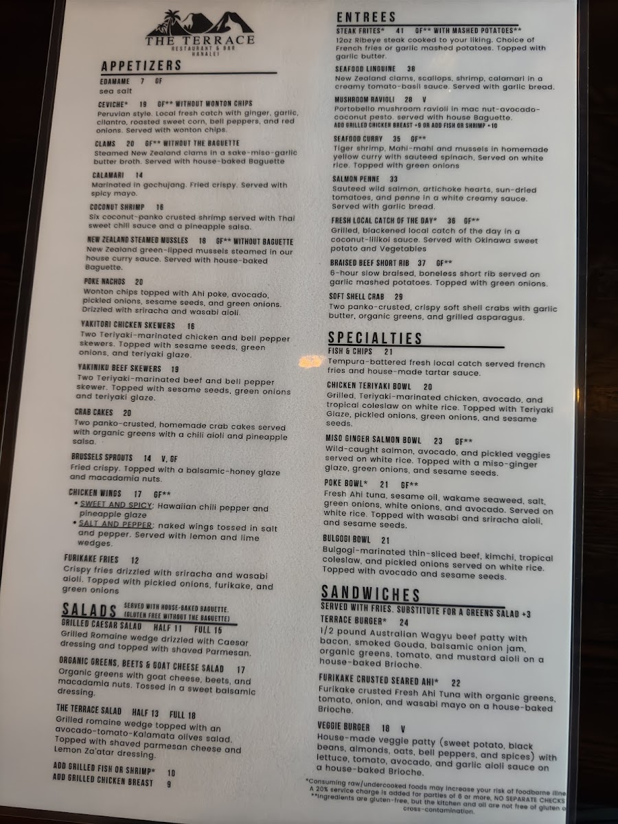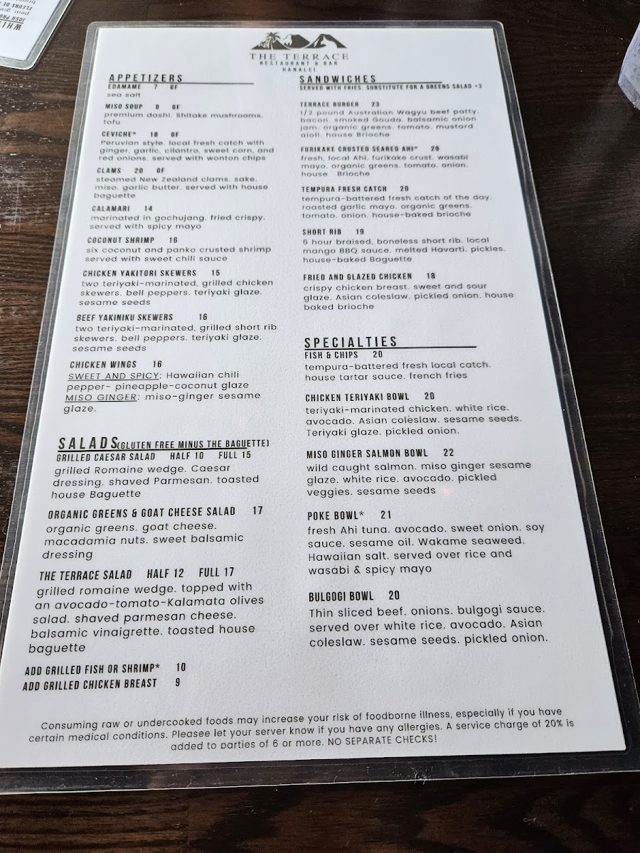 Welcome to The Terrace Hanalei (Upstairs), a gem nestled in the heart of Hanalei, HI. This vibrant eatery boasts a diverse menu that caters to every palate, with highlights including the renowned Poke bowl, coconut shrimp, and the flavorful bulgogi bowl. Each dish here is thoughtfully crafted, showcasing fresh, local ingredients that reflect the stunning surroundings.